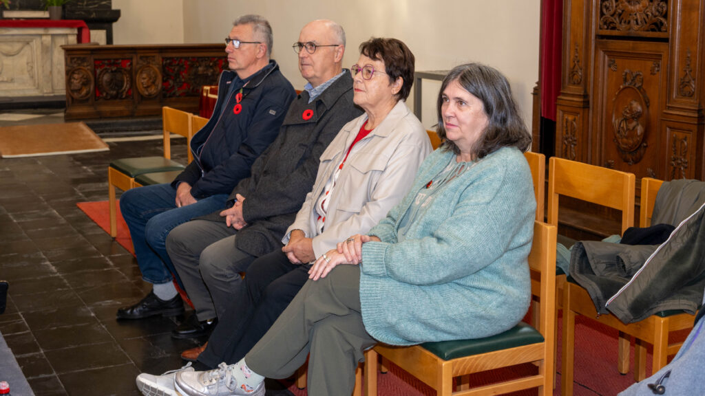 Tijdens het herdenkingsmoment in de kerk werden we toegesproken door Joris Praet, voorzitter van NSB Dudzele, en door schepen Olivier Strubbe. Dat kinderen gevoelig zijn voor de verhalen van de oorlog, lieten een aantal leerlingen van onze scholen horen aan de hand van eigenhandig geschreven gedichten.