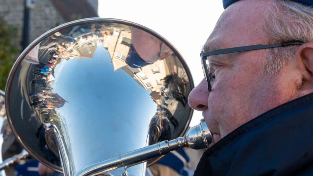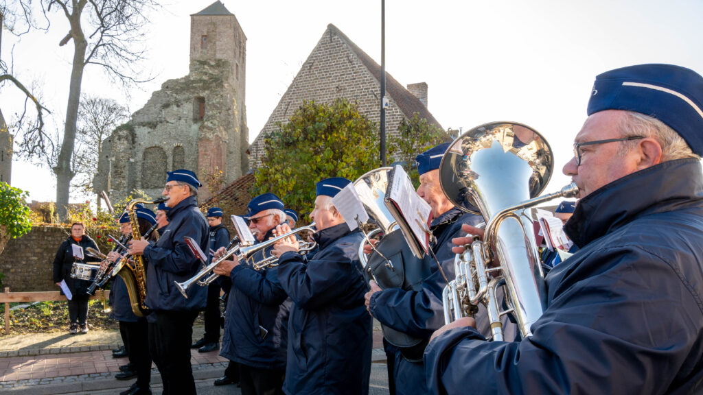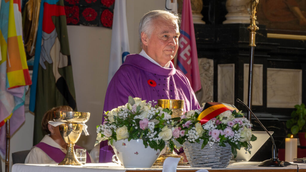 De eucharistieviering werd opgeluisterd door de ‘Cantorij Jubilate uit Oostkamp’ met Mithra Van Eenhooge aan het orgel, Inge Van Hulle, de ‘For Freedom Pipes en Drums’ en de ‘Koninklijke Muziekmaatschappij Poldergalm’. Ook onze acoliet Lars en lectoren Gisèla en Greet zorgden mee voor een sfeervolle viering.