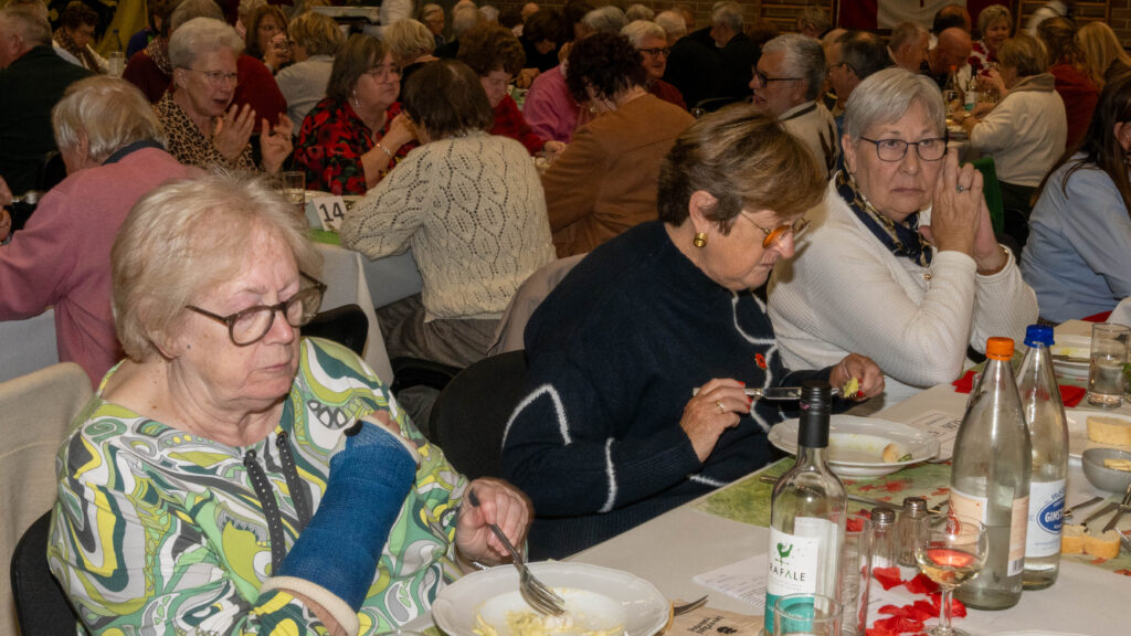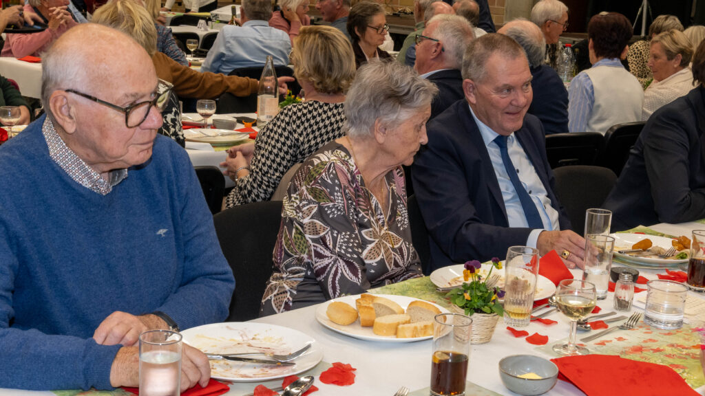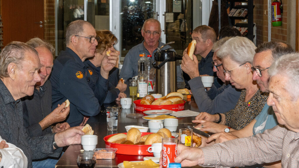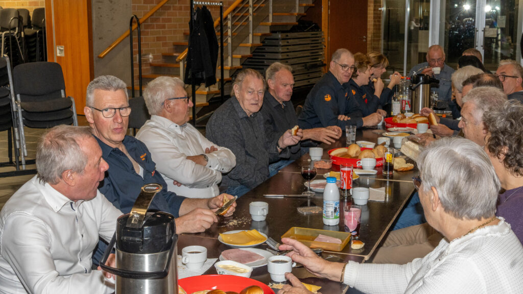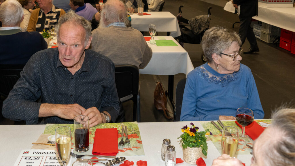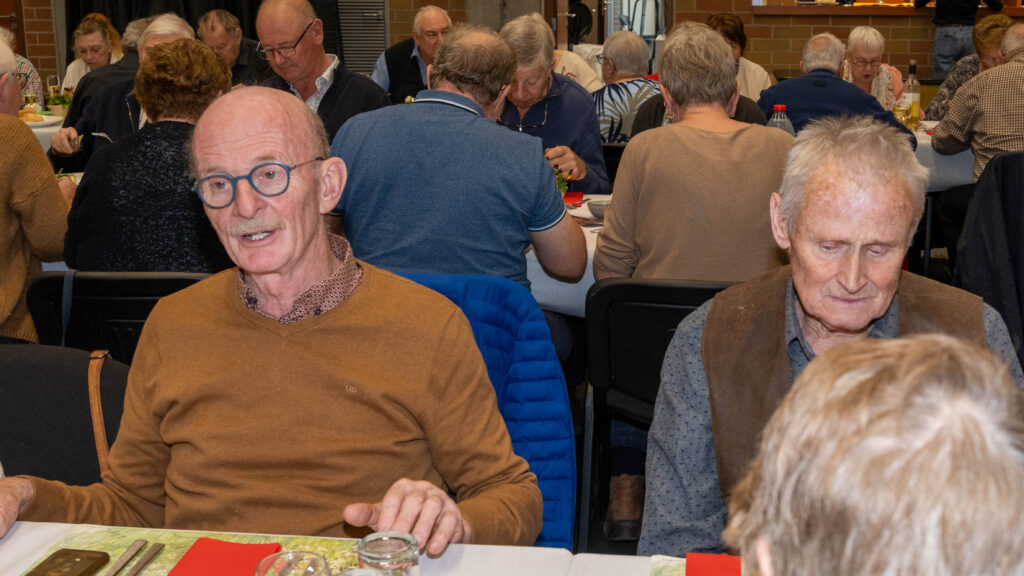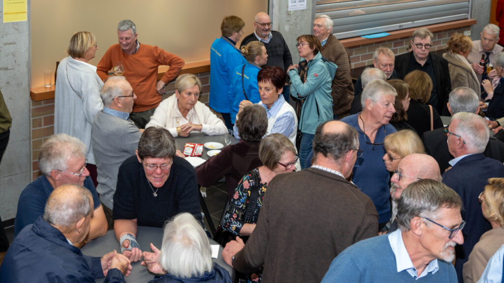 Met een natje en een droogje werd bijgepraat in de zaal De Polder. In de namiddag werd voor het feestmaal aangeschoven. Deze werd afgesloten met de traditionele tombola.