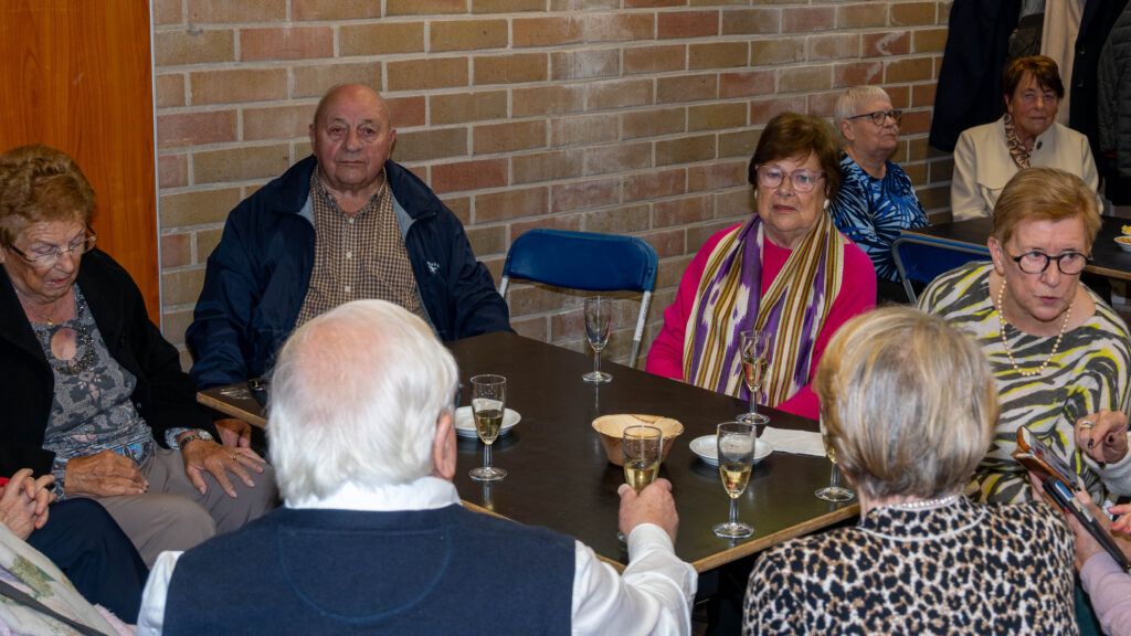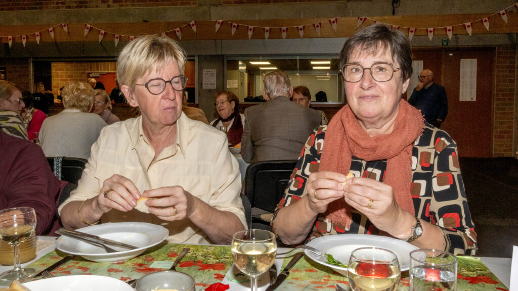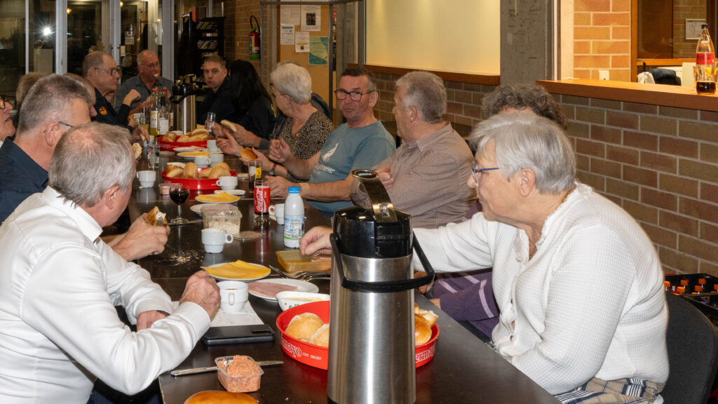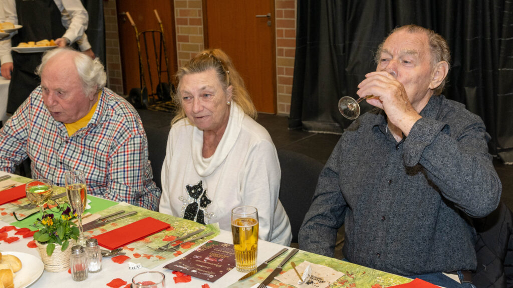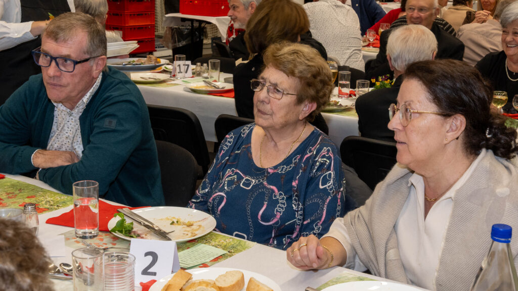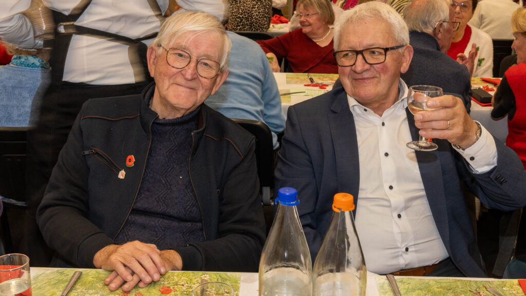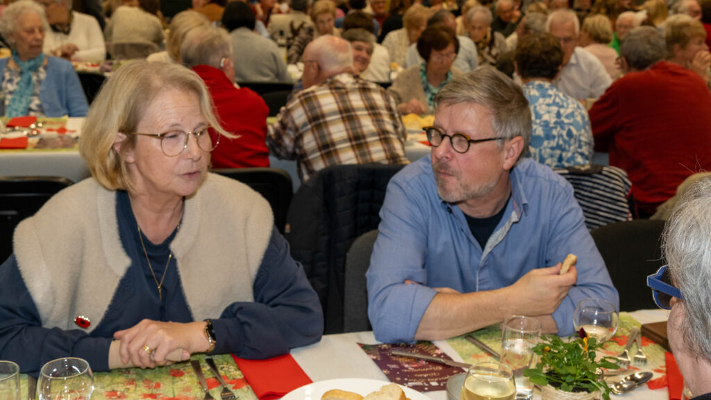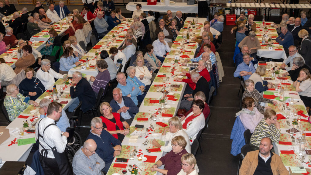Met een natje en een droogje werd bijgepraat in de zaal De Polder. In de namiddag werd voor het feestmaal aangeschoven. Deze werd afgesloten met de traditionele tombola.