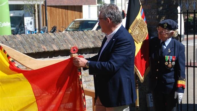 Overhandiging van de vlag door Burgemeester Dirk Defauw aan onze voorzitter Martin Van Acker.