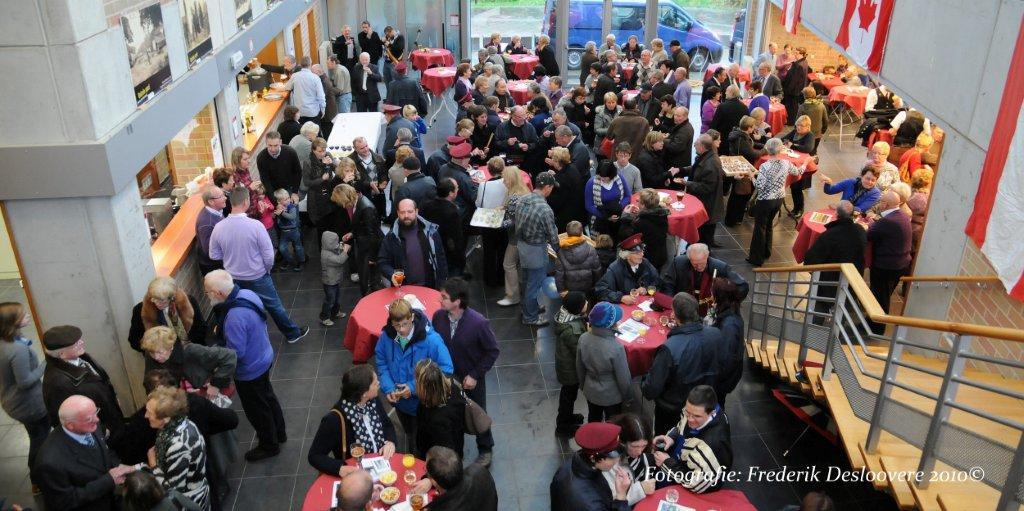 Na de misviering trokken de aanwezigen, waaronder vele kinderen, in stoet naar de zaal De Polder. Aan De Polder werden vredesballonnen opgelaten door de kinderen. Over een natje en een droogje werd na- en bijgepraat tijdens een rijkelijke receptie. In de namiddag werd door de ingeschrevenen een lekker feestmaal genuttigd. De voorzitter van NSB Dudzele, dhr.André Proot, richtte het woord aan de aanwezigen. Naar jaarlijkse gewoonte werd een gesneuvelde in de kijker gezet. Voor dit jaar was dit dhr.Amand De Backer, een in Nederland geïnterneerde soldaat.