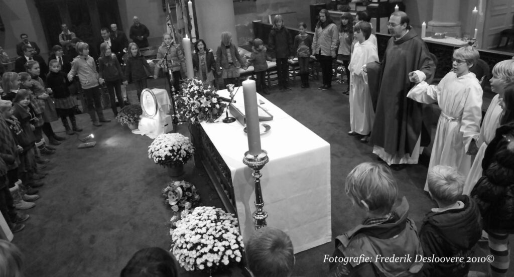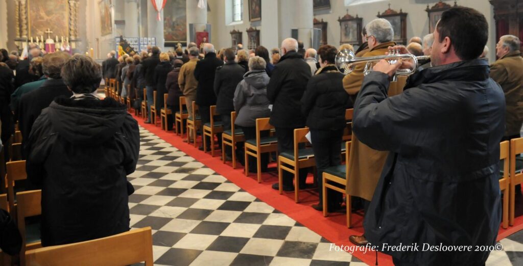 De misviering werd opgeluisterd door de prachtige stem van mevr.Amaryllis Dieltiens, kippevelmomenten van de “Pipers”, de Koninklijke Harmonie Poldergalm, de engeltjes uit het jongerenkoor en het Dudzeelse kerkkoor.