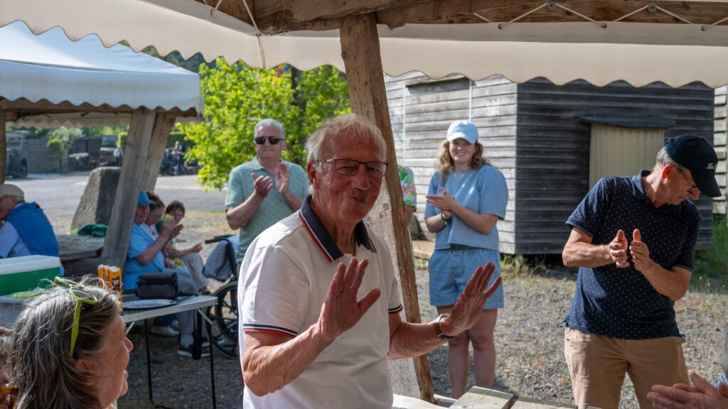 Na het bezoek van die indrukwekkende bunkercomplex is het stilaan tijd voor het nuttigen van de traditionele openlucht drink aangeboden door de vereniging. Altijd figuurlijk en letterlijk een gesmaakt element.