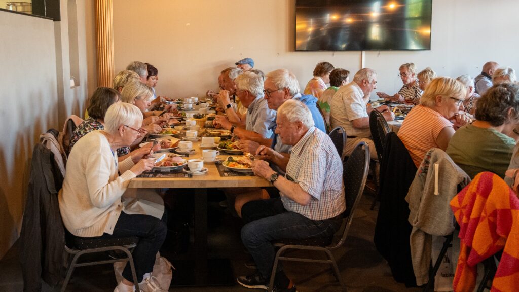 Daar de tijd niet stilstaat en de buschauffeur gebonden is aan uurregeling begeven wij ons naar het thuisfront waar er in de plaatselijke zaak d’Hoogte nog verwend worden met een verzorgde en gesmaakte stute met charcuterie, kaas en alle bijbehoren.