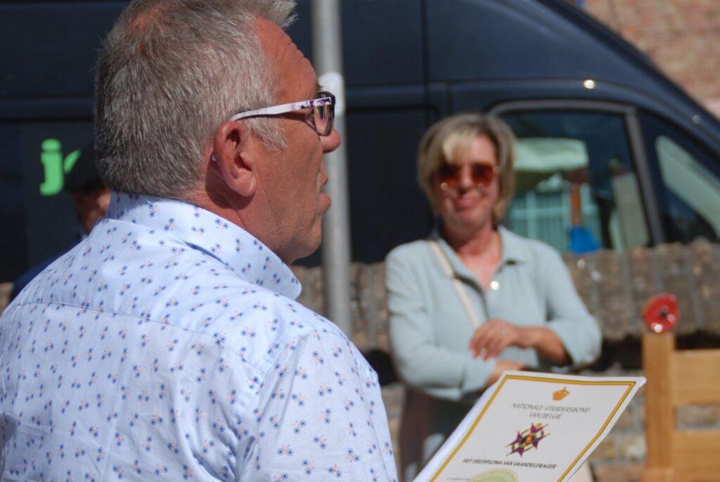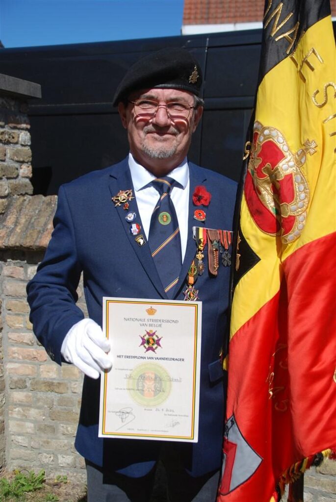 Voor zijn jaren trouwe dienst om ons vaandel met de zorg en eerbied op allerlei manifestaties te dragen wordt, door de Nationale Strijdersbond van België, aan Robert een erediploma van vaandeldrager uitgereikt.